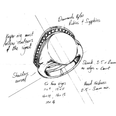 Designed to fit snugly against any oval, landscape or round signet ring, the Rebus Keeper can be solid or stone-set, worn alone or stacked for an eye-catching and intriguing style statement. A myriad colour and stone options to choose from.