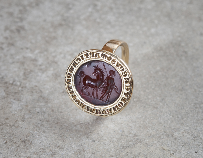 ‘A crusader may have brought the stone back to England from the East. In the 13th century, it was set in the ring — perhaps in York, where there were many jewellers — and the ring was given an inscription in Lombardic lettering, which was the fashion at the time. The Latin wording says something about ‘our horse’, although I have never translated it. I wear the ring sometimes — I do see the pointlessness of keeping things in boxes.