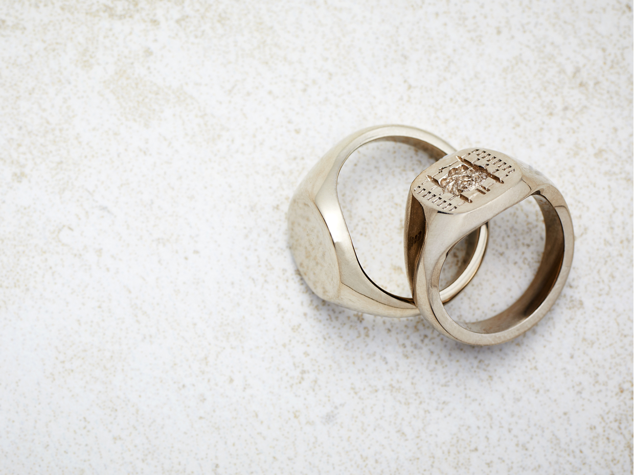 Containing 585 parts of pure gold per thousand, 14ct gold is a popular and well-balanced choice for a signet ring. It strikes the ideal balance between richness and strength — over half pure gold, yet resilient enough to withstand the demands of everyday wear. The heavy-weight Rebus gold signet rings, available in 9ct, 14ct, and 18ct gold, are hand forged and engraved to order. In both colour and durability, 14ct gold sits beautifully between the two, making it an ideal middle ground for those seeking elegance and longevity.