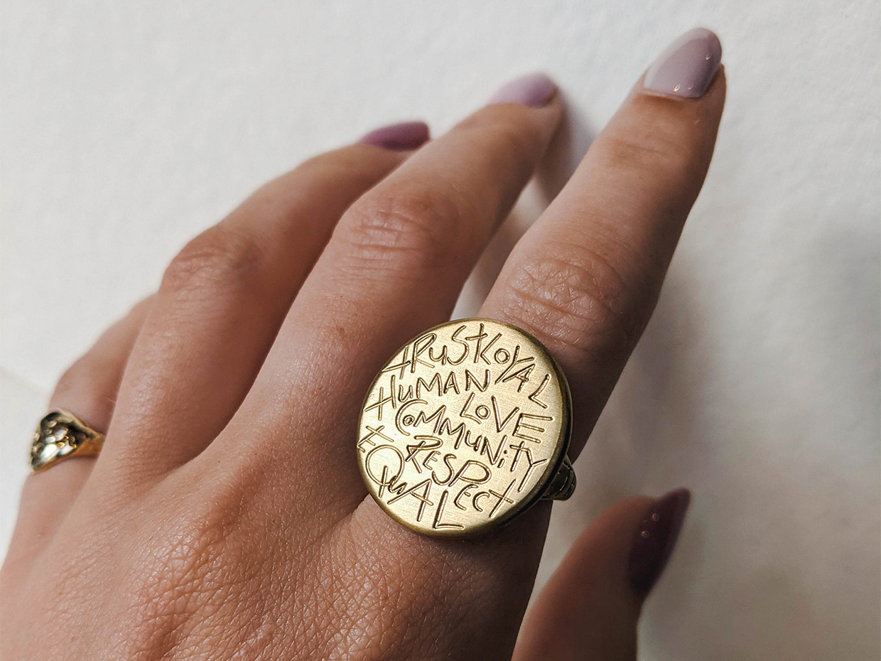 This small collection is available to buy and can be engraved with symbols or words of your choosing. All pieces are made to order in Single Mined Origin Gold and come with a batch number that you can trace back to the origins of your gold.