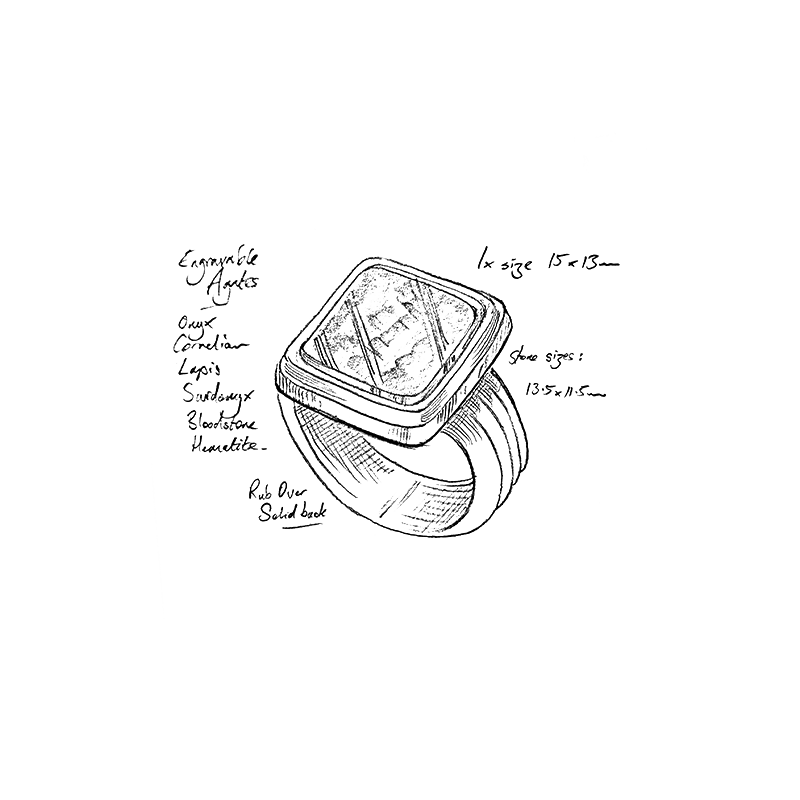 This stone-set version of the Rebus Cushion Signet Ring, this elegant piece was inspired by the antique Romanesque signet rings in the British Museum. Hand engraved by the award-winning craftsmen in our central London workshop, this ring can be made to order in platinum, 9ct, 14ct and 18ct yellow, rose and white gold.