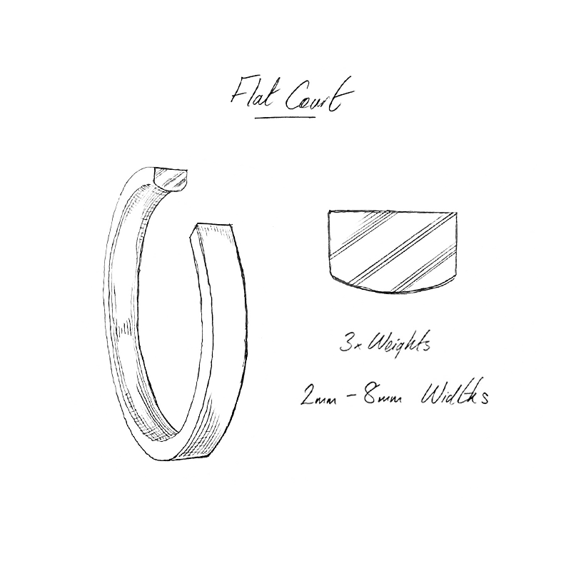 The average depth of medium weight Flat Court wedding rings are 1.6mm.